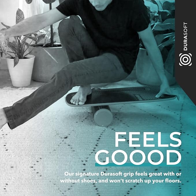 - DURASOFT TRACTION: Our exclusive traction surface is extremely comfortable to use with bare feet, or with shoes, and super durable at the same time. It won’t scratch you or your floors like other boards made with rough griptape.