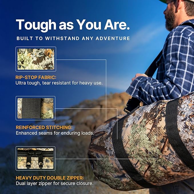 • COMPACT YET SPACIOUS: Measuring 14 x 30", this big travel bag is compact yet spacious enough for your essentials. Whether you need a gym bag, outdoor Weatherproof duffel bag for men or a camping bag, its large capacity ensures easy transport without compromising storage.