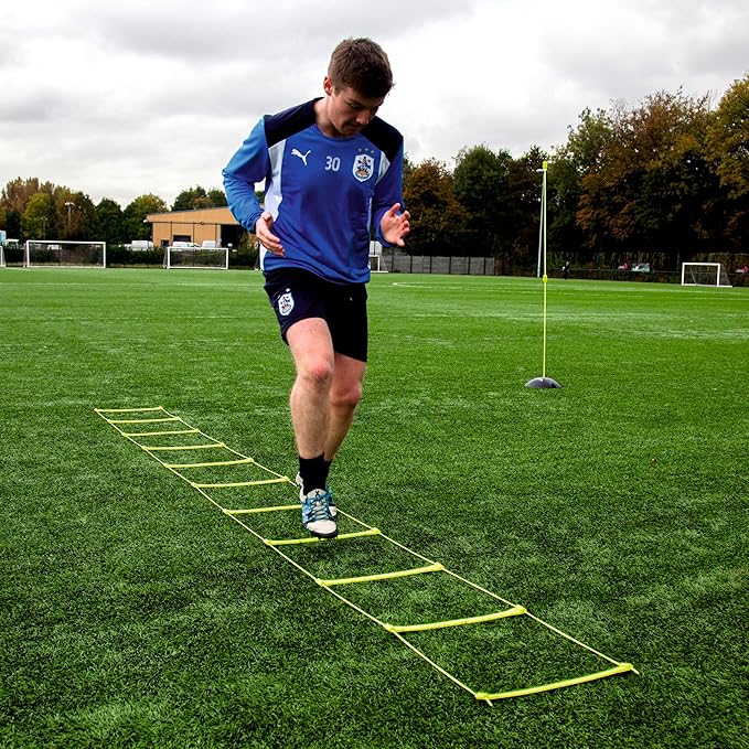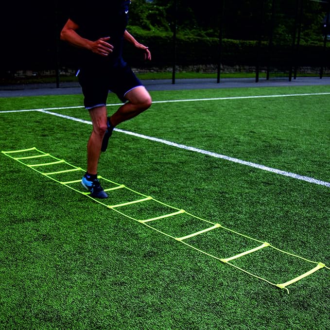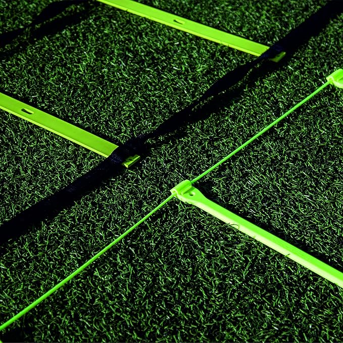 - SUPERIOR VISUAL ACUITY - Ladder drills often call for the athlete to step in and out of the side straps in exercises, but in most ladders they’re colored black, making them hard to see and useless for these training scenarios. The bright neon color of the QUICKPLAY PRO ladder gives it superior visual acuity.