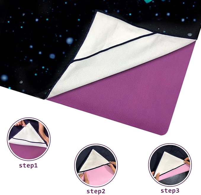 - Premium Microfiber: Our printed yoga towel is made with super absorbent, soft and moisture wicking microfiber that soaks up moisture and sweat like a giant sponge. Perfect for those who sweat and especially for Hot Yoga, Bikram Yoga, and Power Yoga. We only use Eco-Friendly water based print inks and non-fade digital printing.