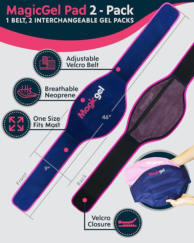 - SPECIALLY DESIGNED FOR YOUR BACK: The gel packs contour around your midriff, sides of your waist and fastens with a secure strap closure. The neoprene is breathable, so it doesn't cause any itching!