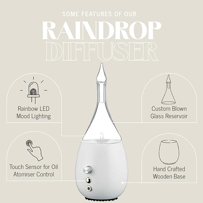 Raindrop 3.0 Nebulizing Diffuser for Essential Oil/Aromatherapy by Organic Aromas with Touch Sensor and MagConnect-Style Electrical Cord and Adapter. (White)