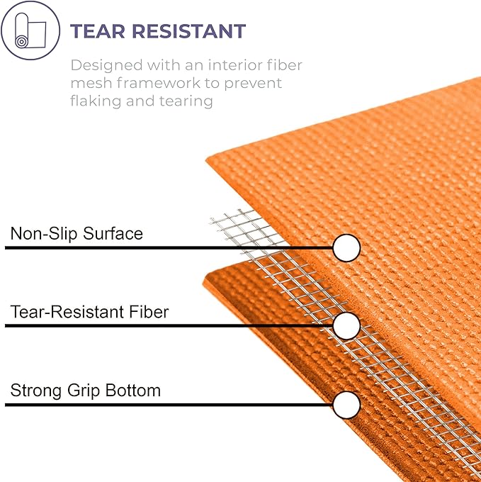 • Non-Slip: The fitness mat features a textured surface for stability and balance when changing or maintaining poses; created with an interior fiber mesh layer to reduce mat stretch and resist tears for longevity