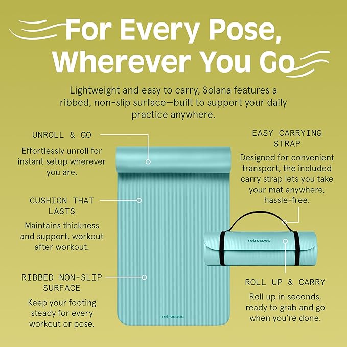 Retrospec Solana Yoga Mat 1/2" Thick w/Nylon Strap for Men & Women - Non Slip Exercise Mat for Yoga, Pilates, Stretching, Floor & Fitness Workouts