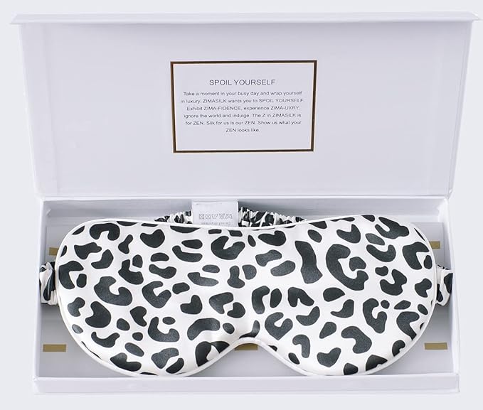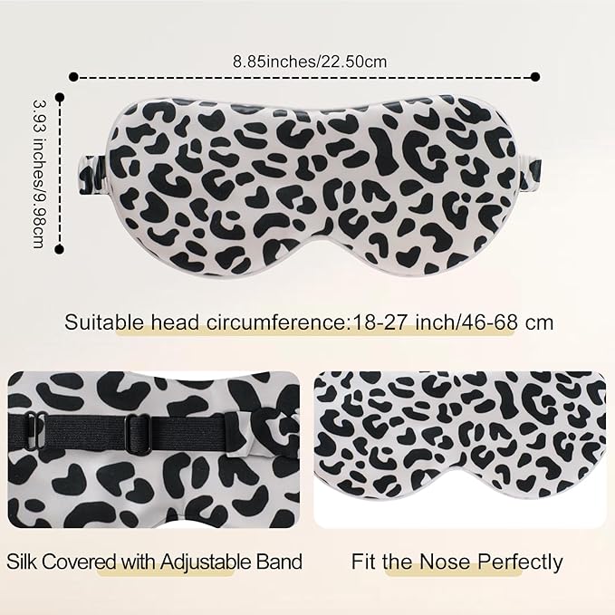 ZIMASILK Adjustable 100% 22 Momme Mulberry Silk Sleep Mask for Sleeping, Filled with Premium Mulberry Silk, Softest & Breathable Eye Sleeping Mask (Leopard - Black White)