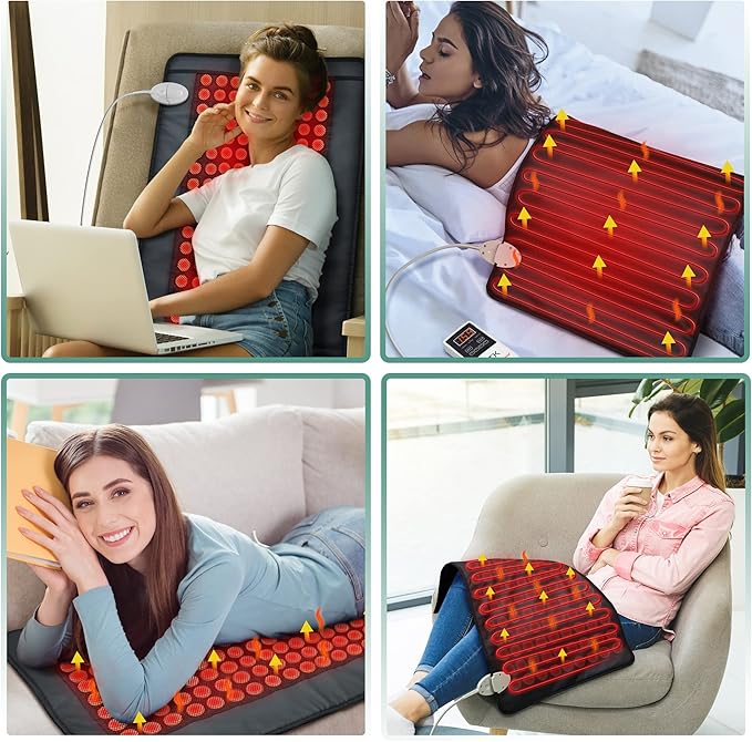 - 5X PAIN RELIEF INFRARED HEATING PAD! The heating pad for back releases far-infrared heat that penetrates 4-6 inches deep into the skin, delivering ultimate relaxation from the inside out and effectively relieving muscle and joint stiffness and soreness. The jade stone stores heat, and the carbon fiber heats up to 159°F, 10-15°F higher than other heating pads. This maximizes the depth and durability of the far-infrared energy delivery, a unique advantage unmatched by ordinary heating pads.