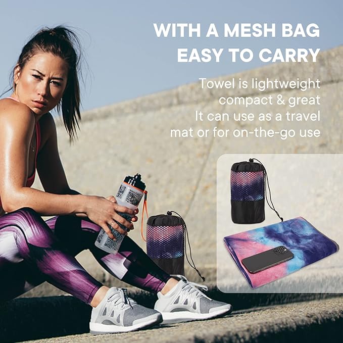 • HYGIENIC AND HEALTHY: By using this yoga towel on top of the studio mat, you can put a hygienic layer between you and the mat. This will increase your confidence and remove your worries about whose sweat and germs you'll be practicing on. It's lightweight, easy to carry, and fits nicely in your bag.