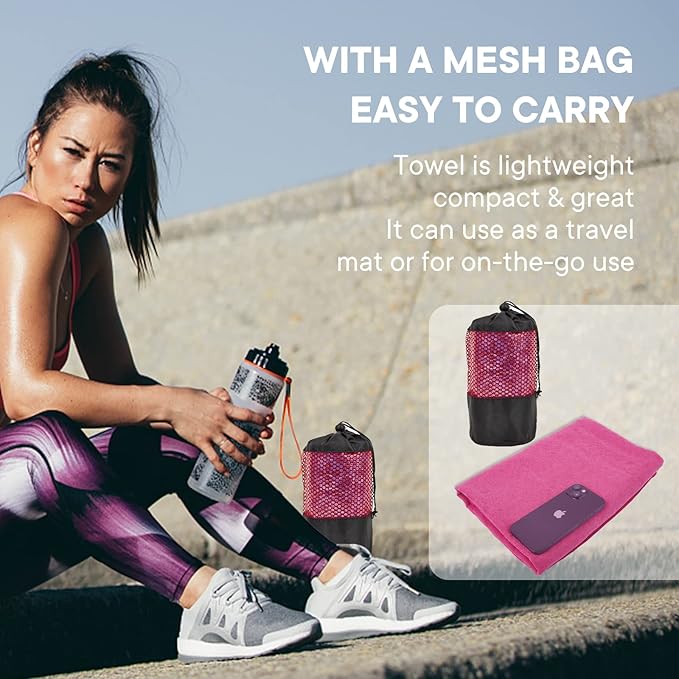 - HYGIENIC AND HEALTHY: By using this yoga towel on top of the studio mat, you can put a hygienic layer between you and the mat. This will increase your confidence and remove your worries about whose sweat and germs you'll be practicing on. It's lightweight, easy to carry, and fits nicely in your bag.