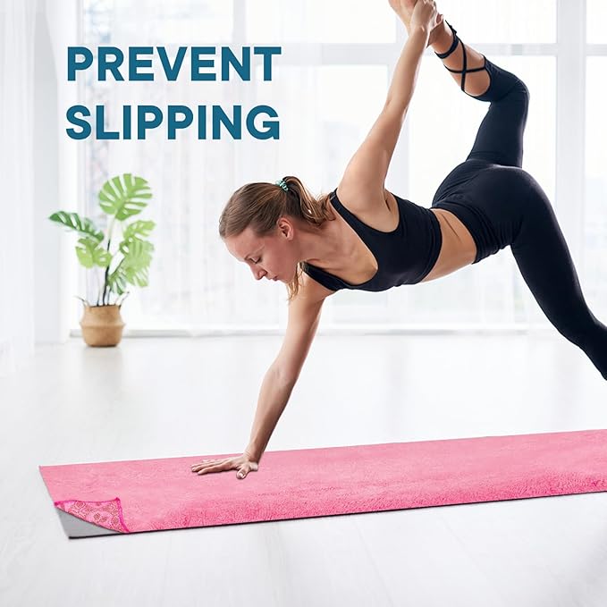 • PREMIUM MATERIAL: Made of high-quality, breathable, and quick-drying material, this yoga mat towel is perfect for hot yoga and sweaty sessions. The non-slip surface ensures a firm grip for your hands and feet, preventing injuries.