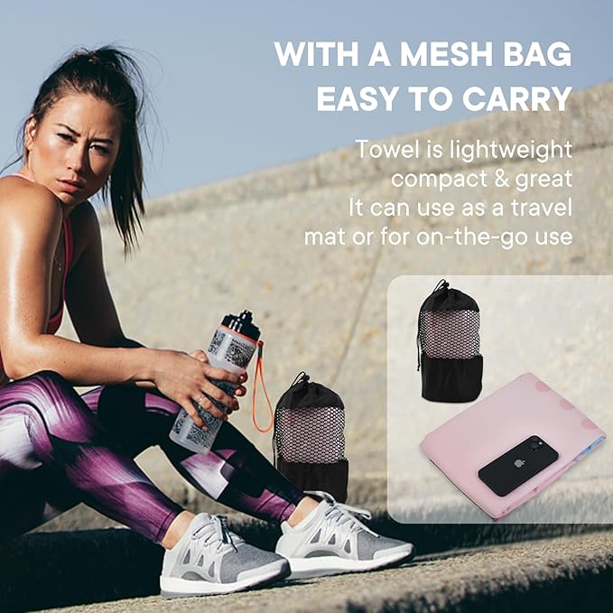 • HYGIENIC AND HEALTHY: By using this yoga towel on top of the studio mat, you can put a hygienic layer between you and the mat. This will increase your confidence and remove your worries about whose sweat and germs you'll be practicing on. It's lightweight, easy to carry, and fits nicely in your bag.