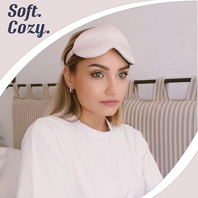 - COMFORTABLE SLEEP & RELAXATION: This silk sleep eye mask features a padded eyecup design with a nose contour and puffed edges for maximum comfort. The adjustable silk-lined elastic band ensures a perfect fit, while the 3D shape effectively blocks out light without putting pressure on your eyes. Additionally, the silk material helps to maintain skin hydration, allowing for a truly rejuvenating night's rest.