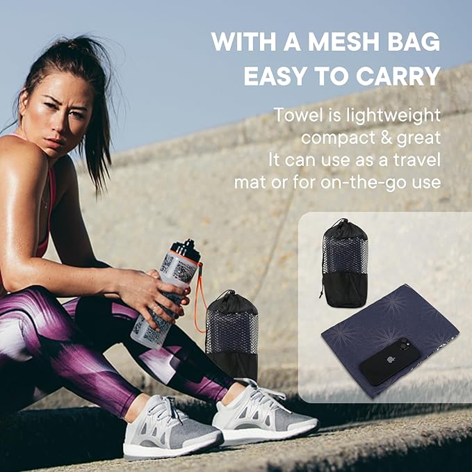 • HYGIENIC AND HEALTHY: By using this yoga towel on top of the studio mat, you can put a hygienic layer between you and the mat. This will increase your confidence and remove your worries about whose sweat and germs you'll be practicing on. It's lightweight, easy to carry, and fits nicely in your bag.