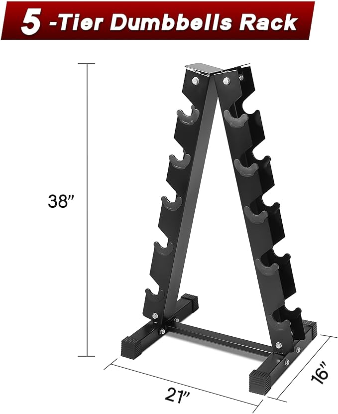 • 【Package Included】:Contains 2X5LB、2X10LB、2X15LB、2X20LB、2X25LB dumbbells with 1 X 5 Tier Rack. A sturdy set of dumbbells can be used for various barbell exercises, and you can choose different combos to vary the intensity of your workouts.