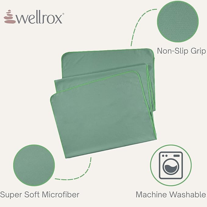 - π¦π§ππ¬ ππ₯π’π¨π‘πππ β Experience worry-free yoga with the Wellrox non slip yoga towels, crafted with advanced anti-slip backing technology. It stays firmly in place on your mat, ensuring stability and confidence, even during intense hot yoga sessions or challenging poses.