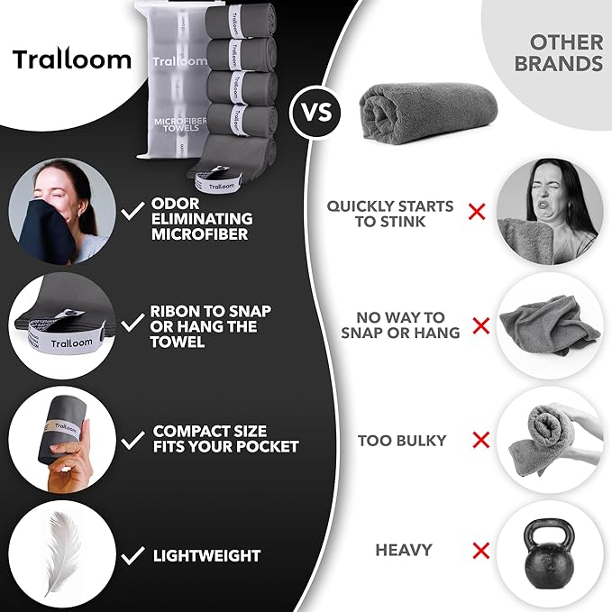 • WHY NOT REGULAR TOWEL? Unlike regular bulky towels or gym paper, which can be scratchy and messy, our towel’s premium fibers are designed to be compact, gentle on the skin, stink-free, and highly absorbent. These fast drying towels are perfect for athletic activities like Pilates, pickleball, basketball, and CrossFit, as well as for saunas, travel, hiking, and the beach. A versatile rag and fitness gift, they are must haves for bodybuilders, weightlifters, and anyone looking for reliable gear and accessories for workouts, showers, or daily essentials