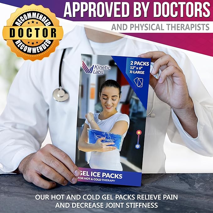 Reusable Gel Ice Packs for Injuries by Kinetic Labs (2 Pack) - Hot Cold Packs for Injuries 12" x 6" - Flexible Ice Packs for Back Head Knee Shoulder Neck Ankle Elbow Feet Headaches Surgery (X-Large)