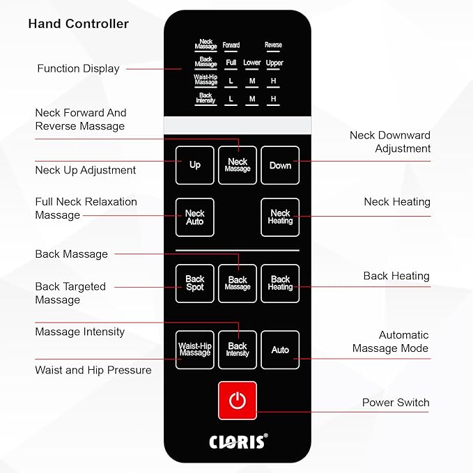 - Rolling Back Massage: Four massage nodes with heating and 2D/3D finger pressure shiatsu massage roll massage along the back spine combats across the whole back, of course you can also concentrate in a regional massage such as full back, upper or lower back.