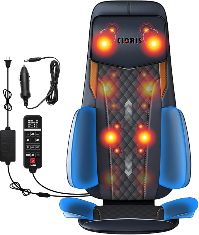 CLORIS Neck Back Massager with Heat, Automatic Adjustable Neckrest, 3D Shiatsu Compress & Rolling Massage Chair Pad for Full Body Relaxation, Home Office Chair Use, Gift for Family & Friends Blue