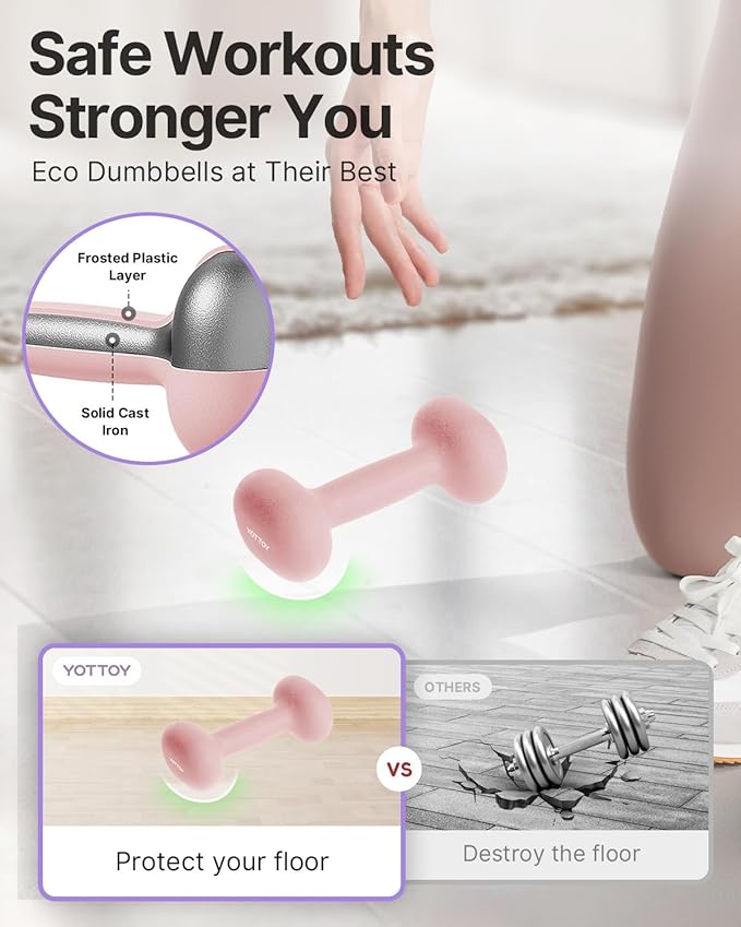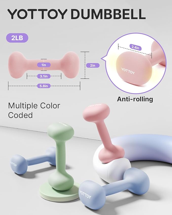 YOTTOY Dumbbell Set of 2,2-15 Pound Hand Weights for Women, Non-Slip Hand Weights for Home Gym, Strength Training, and Full-Body Workouts