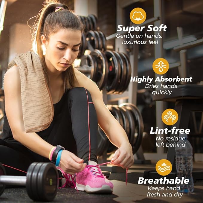 - Long-Lasting Durability: Invest in a gym towel that stands the test of time. With reinforced stitching and a 400GSM waffle weave, this premium waffle hand towel maintains its softness, shape, and absorbency even after repeated washing