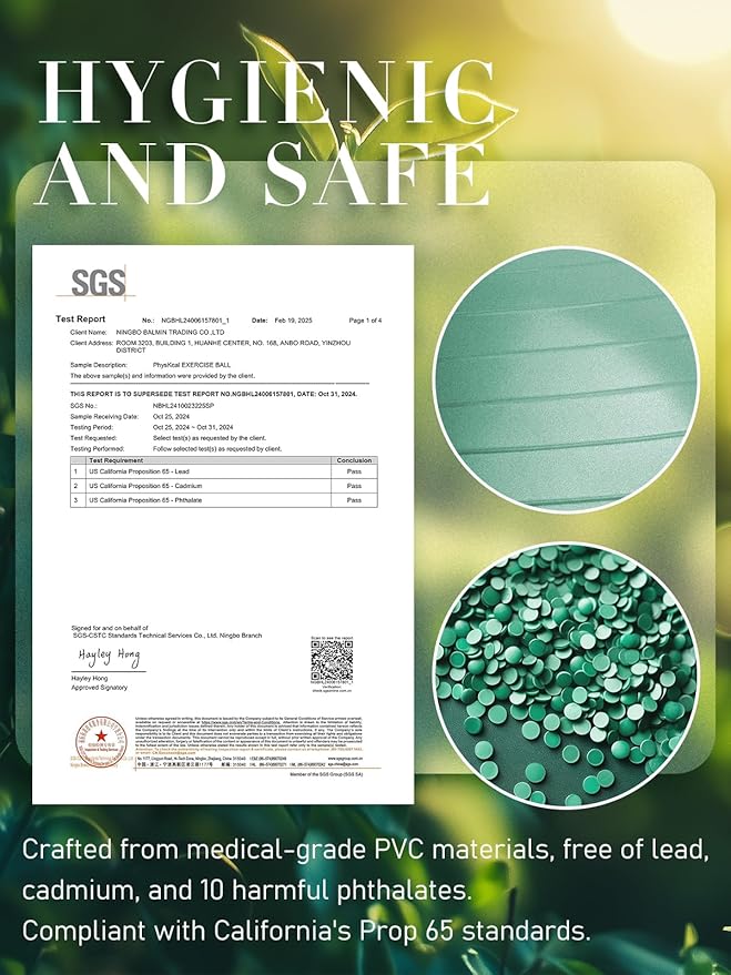 - ๐ค๐๐ฒ๐ ๐ข๐๐ง๐ข๐ ๐๐ง๐ ๐๐๐๐- A gym ball, or also known as fitness ball, physio ball, yoga ball or balance ball is normally made of PVC. We upgraded the grade of PVC of our gym ball to a 16p-free level. It is free from phthalates, latex, BPA and other leading harmful chemicals, thus offering a safe and gentle support for exercise, seat and pregnancy.