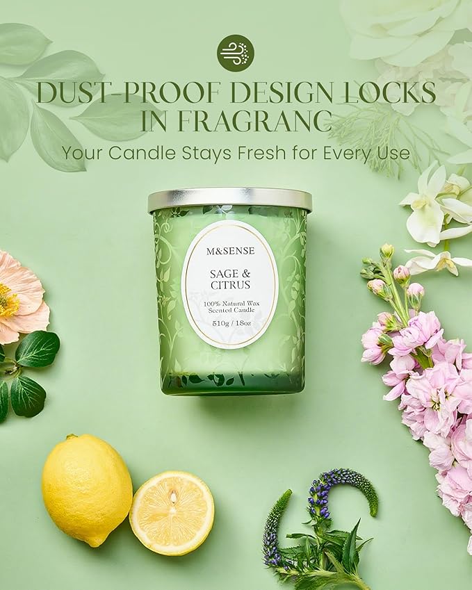 M&SENSE Sage Citrus Scented Candle, Cracking Wooden Wick Soy Wax, 18oz 100 Hours Long Lasting Clean Burn, Large Jar Candles for Home Decor, Non-Toxic Relaxing Aromatherapy Gifts for Women