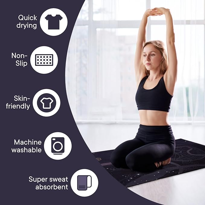 - PREMIUM MATERIAL: Made of high-quality, breathable, and quick-drying material, this yoga mat towel is perfect for hot yoga and sweaty sessions. The non-slip surface ensures a firm grip for your hands and feet, preventing injuries.