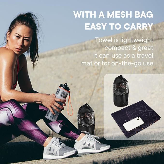 - EASY CARE AND PORTABLE: Simply throw this yoga towel into the washing machine with like colors and tumble dry low to keep it clean and fresh for your next yoga practice. The size of this yoga mat towel is 72 x 24 inches when unfolded, and 9 x 3.5 inches when folded. This makes it easy to store in the compact drawstring bag included in the package, making it convenient to bring it with you anywhere.