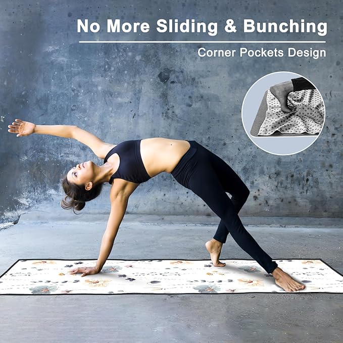 - Corner Pockets: Features 4 corner pockets on the backside, the non slip yoga mat towel helps secure and hold onto the mat firmly. Allows you to focus your mind, body and breath on the yoga practice, without worrying about bunching.