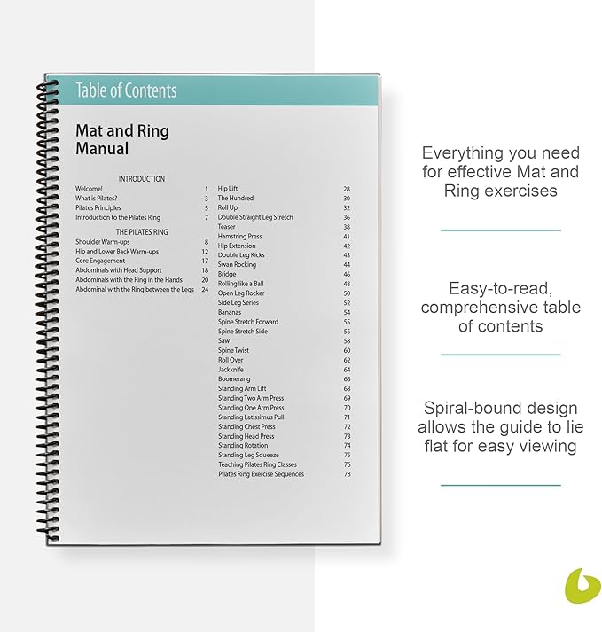 - PILATES EQUIPMENT GUIDE: Maximize your Pilates workout with our Ring and Mat Guide. This useful exercise guide features 88 pages with 37 exercises, full-color pictures, and step-by-step instructions so you can get the most from your floor workout.