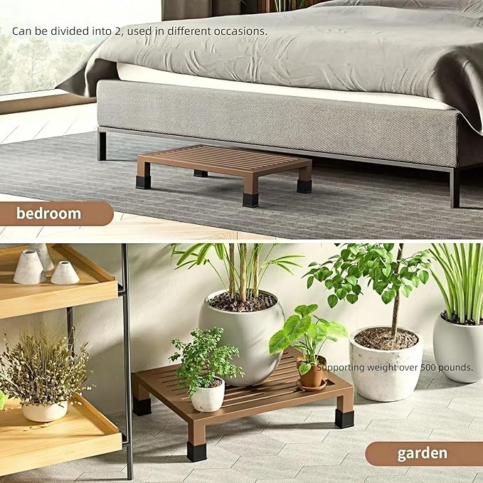 - 【Exquisite Workmanship】This step stool is ingeniously designed, can be used alone after installing the step, and can be used in combination after installing the step pad. This new and practical type can be used as a step stool for a variety of occasions, and can also be used a floor stand or flower stand. Safe and anti-slip iron technology is environmentally friendly and ergonomic. It has good technology, excellent anti-corrosion and anti- protection, uniform coating, and good breathability. It can resist wind, rain, aging, and small insects better than wood products.