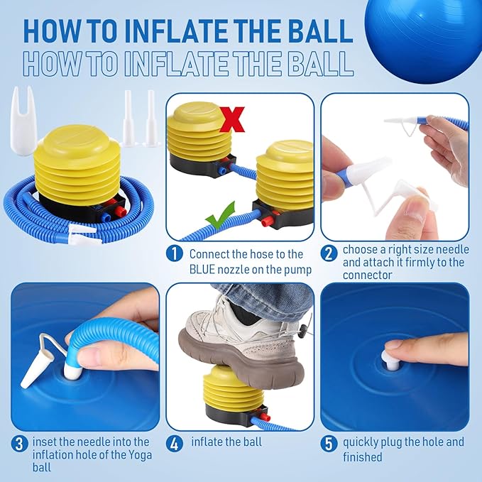 • Various Colors: you will receive 4 pieces of exercise balls for working out in blue color, equipped with 1 piece of foot pump, 1 piece of air pull, and 2 pieces of air plugs; The complete set can meet your exercise needs