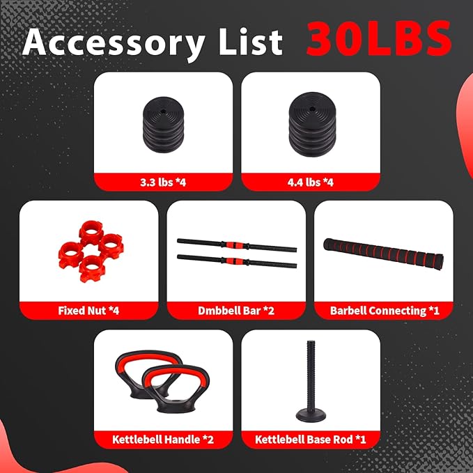 Adjustable Dumbbells Set - 20lbs/30lbs/70lbs/90lbs Multi-Functional Fitness Set, Kettlebell & Barbell Patterns, Beginner Dumbbell Fitness