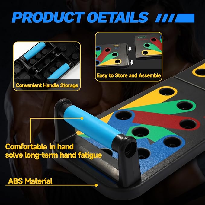 - 1.9 in 1 Push Up Board – Features 15 angle slots for perfect push-up form, targeting chest, arms, shoulders, core & back for a full-body workout.