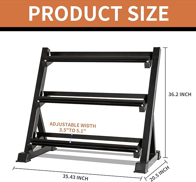 - Durable and Strong: The weight rack with dumbbells set (our 220lbs dumbbell set) is made of solid cast iron that stays strong and durable even with repeated use. The 5-35 barbell dumbbell rack-heavy duty adjustable 3 tier dumbbell storage rack is constructed from steel and coated with black powder to resist wear and tear, complementing the sturdiness of our rack of dumbbells.