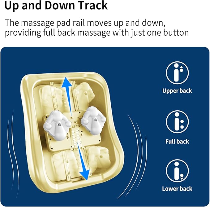 - Rolling Up & Down 4D Shiatsu Back Massager: This back massager is designed for seated use. The rollers start at your lower back and gradually move upward along both sides of your spine. Each side features a rotating massage head with four nodes, mimicking the feel of palms working your muscles. Whether you're recovering from an intense workout or easing the aches of a long workday, this deep-kneading massager melts away stiffness and fatigue—so you can unwind like never before. The massager combines three intensity levels, allowing you to tailor your massage to your preferences for relaxing the back, calves, and thighs.