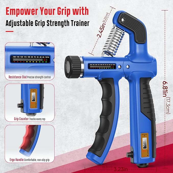 - ๐๐ฑ๐ท๐๐๐๐ฎ๐ฏ๐น๐ฒ ๐ฅ๐ฒ๐๐ถ๐๐๐ฎ๐ป๐ฐ๐ฒ ๐๐ถ๐๐ต ๐ฅ๐ฒ๐ฎ๐น-๐ง๐ถ๐บ๐ฒ ๐ง๐ฟ๐ฎ๐ฐ๐ธ๐ถ๐ป๐ด โ Customize your training with a 10-160 lbs resistance dial and monitor your progress using the built-in force gauge. Fine-tune your grip strength with precision and challenge yourself at every level.