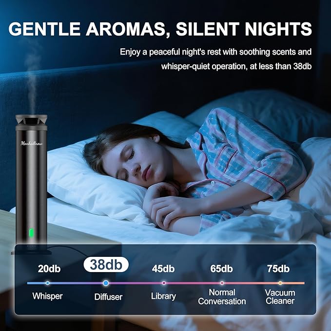 - Effortless Operation & Smart Control: This premium waterless diffuser offers intuitive button and remote functions for easy use. Set 1, 4, or 8-hour timers and choose from six scent intensity levels to personalize your aromatherapy—from cozy bedrooms to large rooms—with minimal effort