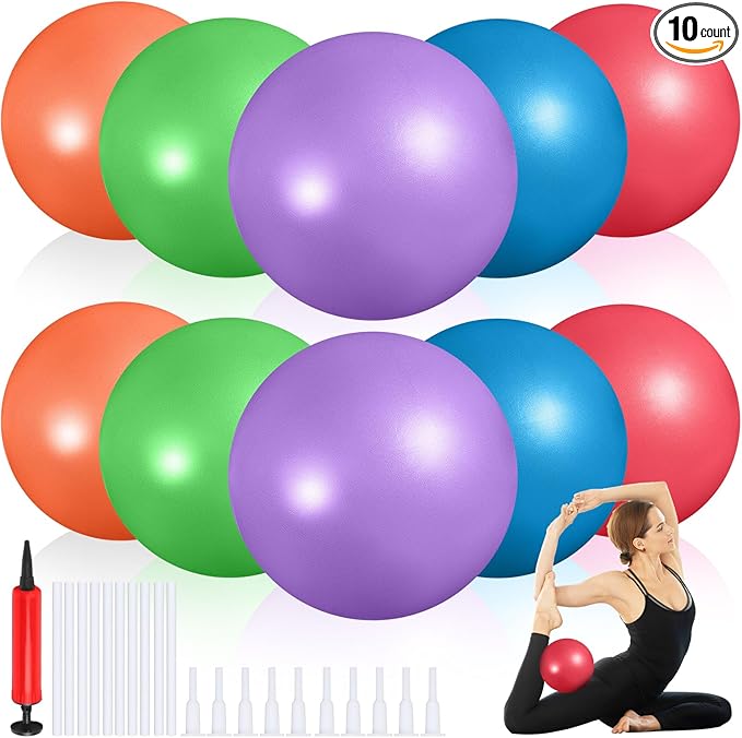 Aoriher 10 Pieces 9 Inch Exercise Pilates Ball Yoga Therapy Core Ball for Yoga Stability Barre Training Stretching Physical Posture Training Gym