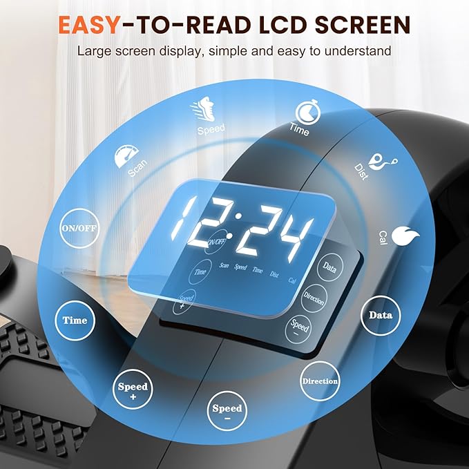 - 【LCD Display & Remote Control】 Track speed, time, distance, and calories on the clear LCD screen. The included remote enables hands-free operation—ideal for users with limited mobility or back issues.