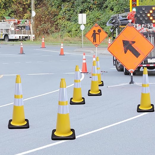 - 360 Degree Reflective Cones: Our yellow warning cones incorporate highly visible 4"+6" reflective collars, promoting improved visibility in low-light conditions or high-traffic areas for enhanced safety measures